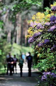 Jeliben a több mint 300 rododendron taxon több ezer különböző színben pompázó példányában gyönyörködhetünk. A különféle rododendron-fajok, változatok áprilistól júniusig virágoznak, de az arborétum május közepén a legszebb, amikor a legtöbb bokor nyílik.