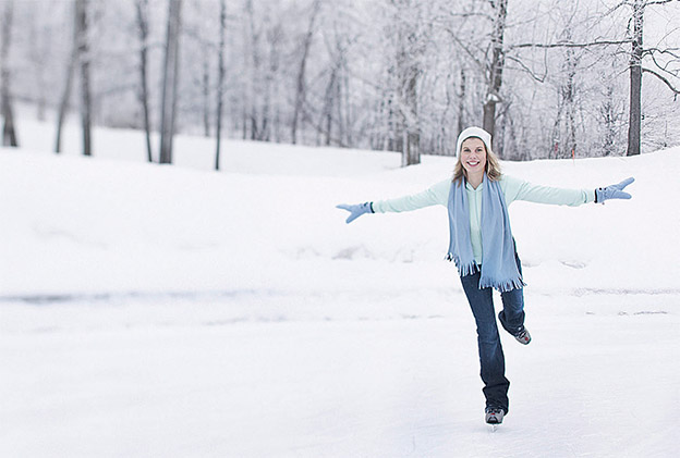 A téli sportok – korcsolya, fakutya, jéghoki, curling, jégvitorlázás, lékhorgászat – nagyszerű hatást gyakorolnak egészségünkre, különösen a szabadban. Lehetőleg az orrunkon vegyük a levegőt, és a szánkon fújjuk ki, így a hideg nem árthat a torkunknak. A megfelelő öltözet kiegészítéseként ne felejtsünk el sapkát húzni, mert a hő 30-40 százalékát a fejünk tetején adja le a testünk. Emellett vigyázzunk a kezünkre, mert ujjaink fagynak le a leggyorsabban. Kezdjük a mozgást bemelegítéssel. A korcsolyázás a fitnesz elemeit egyesíti, fejleszti a mozgékonyságot, a rugalmasságot, az egyensúlyt, építi a csonttömeget. Főként a test alsó részét erősíti, különösen a combizmokat edzi. Korcsolyázással fél óra alatt kb. 260 kalóriát égetünk el. Lábunkra illő korcsolyacipőben a bokánk sem fog fájni.