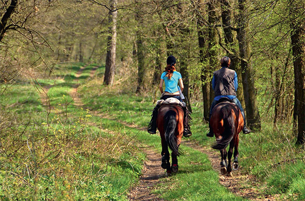 Erdőben és erdőfelújításban legeltetni tilos! Az erdei pihenők, források, tűzrakók tisztaságára pedig lovaglás alkalmával is figyeljünk! A haladási sebességet úgy válasszuk meg, hogy a belógó ágak elől időben a ló nyakára tudjunk simulni. A ló ugyanis nem veszi figyelembe a lovas magasságát. Arra is számítsunk, hogy nagy zajt csapva bármikor felröppenhet egy fácán a közeli bokrokból, feltámadhat a szél, vagy terepakadályokhoz érhetünk (pl. némelyik ló nem szeret pocsolyába lépni, vagy fatörzsön átlépni), amelyek megijeszthetik, megzavarhatják a lovat.