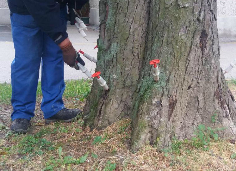 A beavatkozást már a korábbi években is végezték. A lényege, hogy megfúrják a fa törzsét, a lyukba növényvédő szerrel töltött fecskendőt helyeznek és fokozatosan a növény szövetei közé juttatják a kemikáliát.