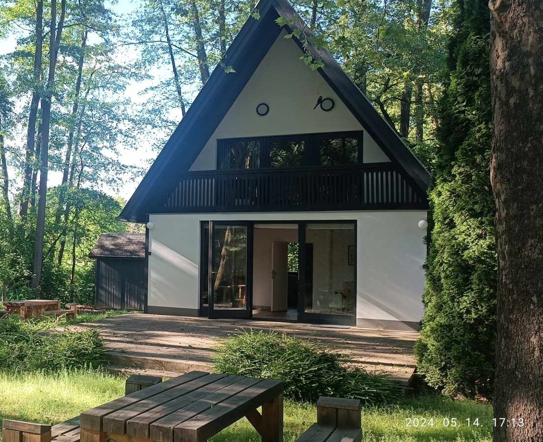 A 3 db hálószobából, konyhából, fürdőszobából és étkezőből álló ház, önellátásra teljesen felszerelt, az udvar füvesített, örökzöldekkel díszített, a kocsik részére a parkolás telken belül biztosított. A kertben saját tó csónakkal, nyársaló, bográcsozó, kerti bútorok, különálló kis faház a kerti sütés-főzés eszközök tárolására. A  ház nem téliesített, így bérelni április 15-től szeptember-október végéig lehetséges.